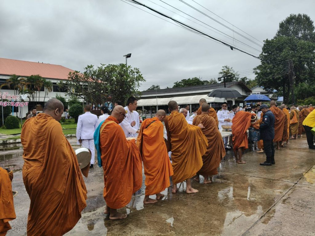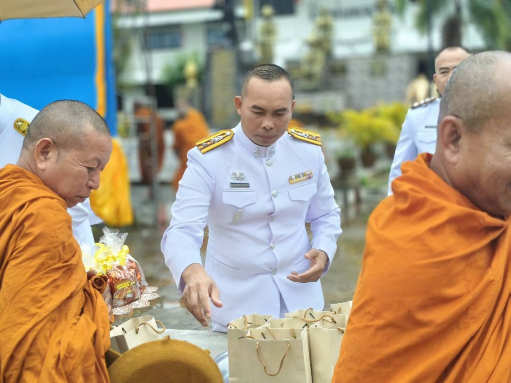 พร้อมด้วยข้าราชการตำรวจ สภ.นาจะหลวย ร่วมพิธีทำบุญตักบาตรและวางพวงมาลาเนื่องในวันนวมินทรมหาราชกิจกรรมน้อมรำลึกในพระมหากรุณาธิคุณ เนื่องในวันคล้ายวันสวรรคต พระบาทสมเด็จพระบรมชนกาธิเบศร มหาภูมิพลอุดลยเดชมหาราช บรมนาถบพิตร 13 ตุลาคม 2568 ณ ที่ว่าการอำเภอนาจะหลวย