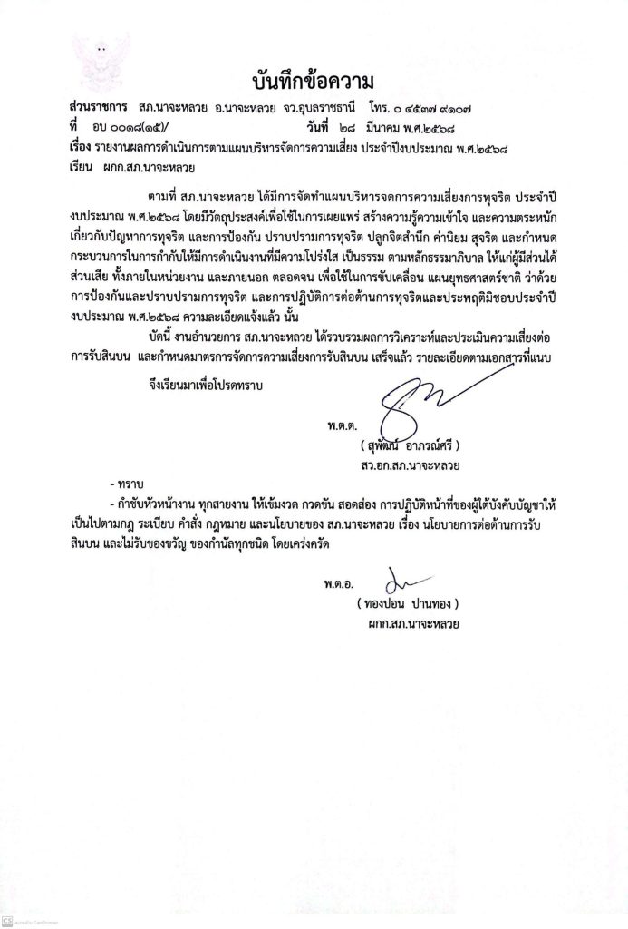 021 รายงานการผลการดำเนินการเพื่อจัดการความเสี่ยงต่อการรับสินบน