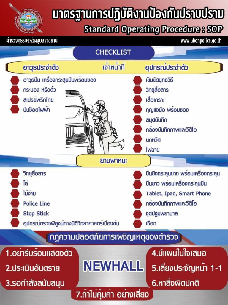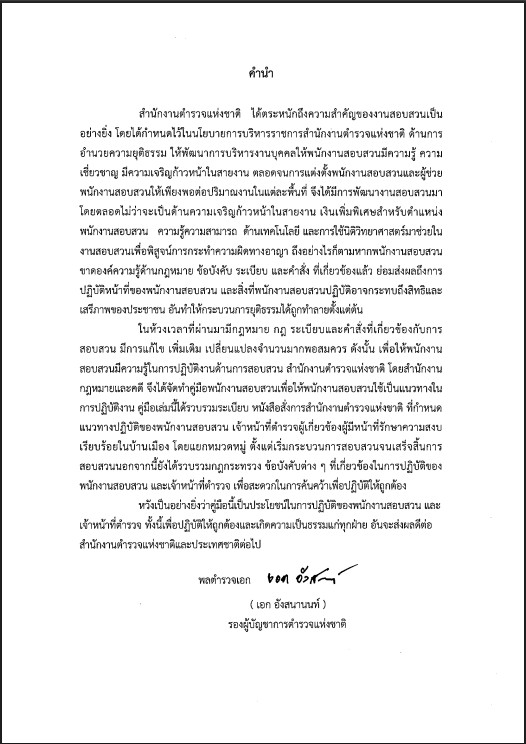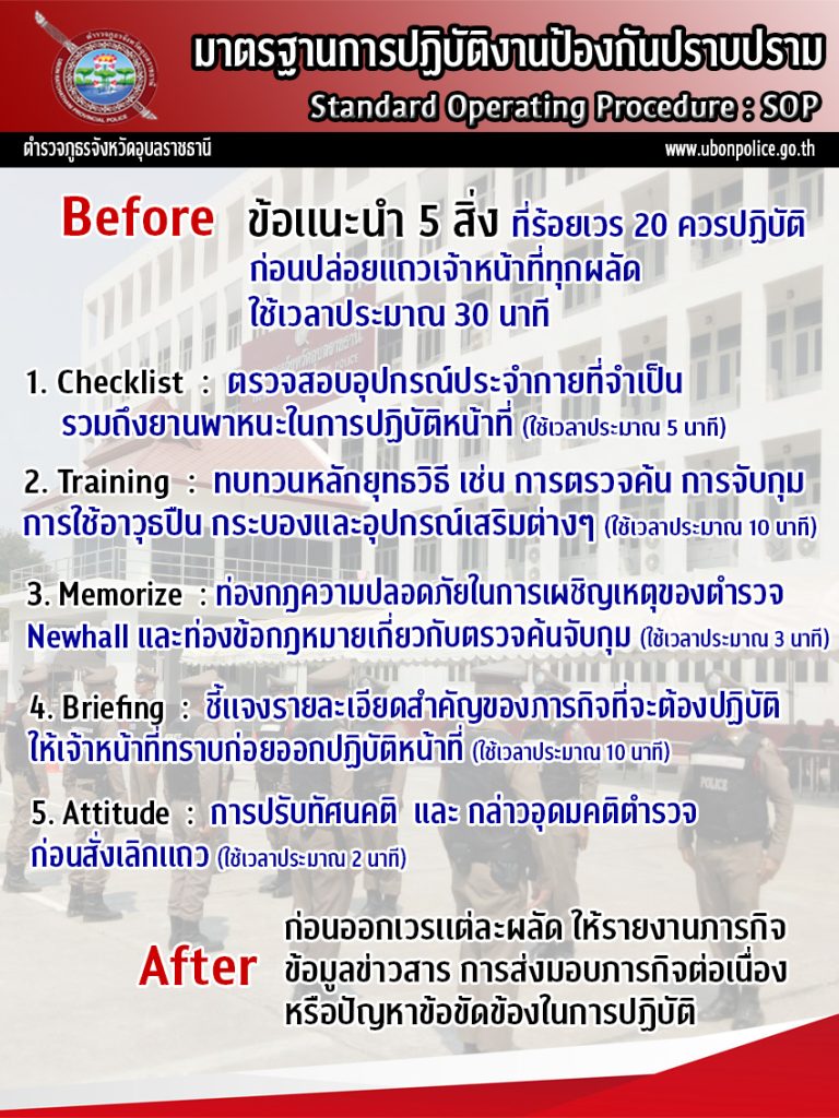 O8 คู่มือการปฏิบัติงานสำหรับเจ้าหน้าที่ ฝ่ายอำนวยการอำนวยการ ๑ คู่มือปฏิบัติงานด้าน – งานธุรการและพัฒนากำลังพล ๒ คู่มือปฏิบัติงานด้าน – งานศูนย์ปฏิบัติการสถานีตำรวจ ๓ คู่มือปฏิบัติงานด้าน – งานกำลังพล ๔ คู่มือปฏิบัติงานด้าน – งานสวัสดิการ ๕ คู่มือปฏิบัติงานด้าน – วินัย ๖ คู่มือปฏิบัติงานด้าน – งานยุทธศาสตร์ ๗ คู่มือปฏิบัติงานด้าน – งานงบประมาณ ๘ คู่มือปฏิบัติงานด้าน – งานพัสดุ ๙ คู่มือปฏิบัติงานด้าน – งานการเงิน ๑๐ คู่มือปฏิบัติงานด้าน – งานควบคุมการเงินของหน่วยงานย่อย ๑๑ คู่มือปฏิบัติงานด้าน – งานจัดวางระบบการควบคุมภายใน ฝ่ายป้องกันปราบปราม ๑ คู่มือการฝึกอบรมข้าราชการตำรวจงานป้องกันปราบปราม ฝ่ายสอบสวน ๑ คู่มือพนักงานสอบสวน ฝ่ายจราจร ๑ คู่มือการฝึกอบรมข้าราชการตำรวจงานจราจร มาตรฐานการปฏิบัติงาน (Standard Operating Procedure: SOP) มาตรฐานการปฏิบัติงานในการระงับเหตุของสำนักงานตำรวจแห่งชาติ มาตรฐานขั้นตอนการปฏิบัติในสายงานจราจร(SOP) ภายใต้ชีวิตวิถีใหม่(New Normal) ในสถานการ์การแพร่ระบาดของโรคติดเชื้อไวรัสโคโรนา 2019 (cocid 19)